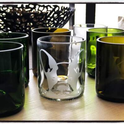 arts de la table en verre recyclé